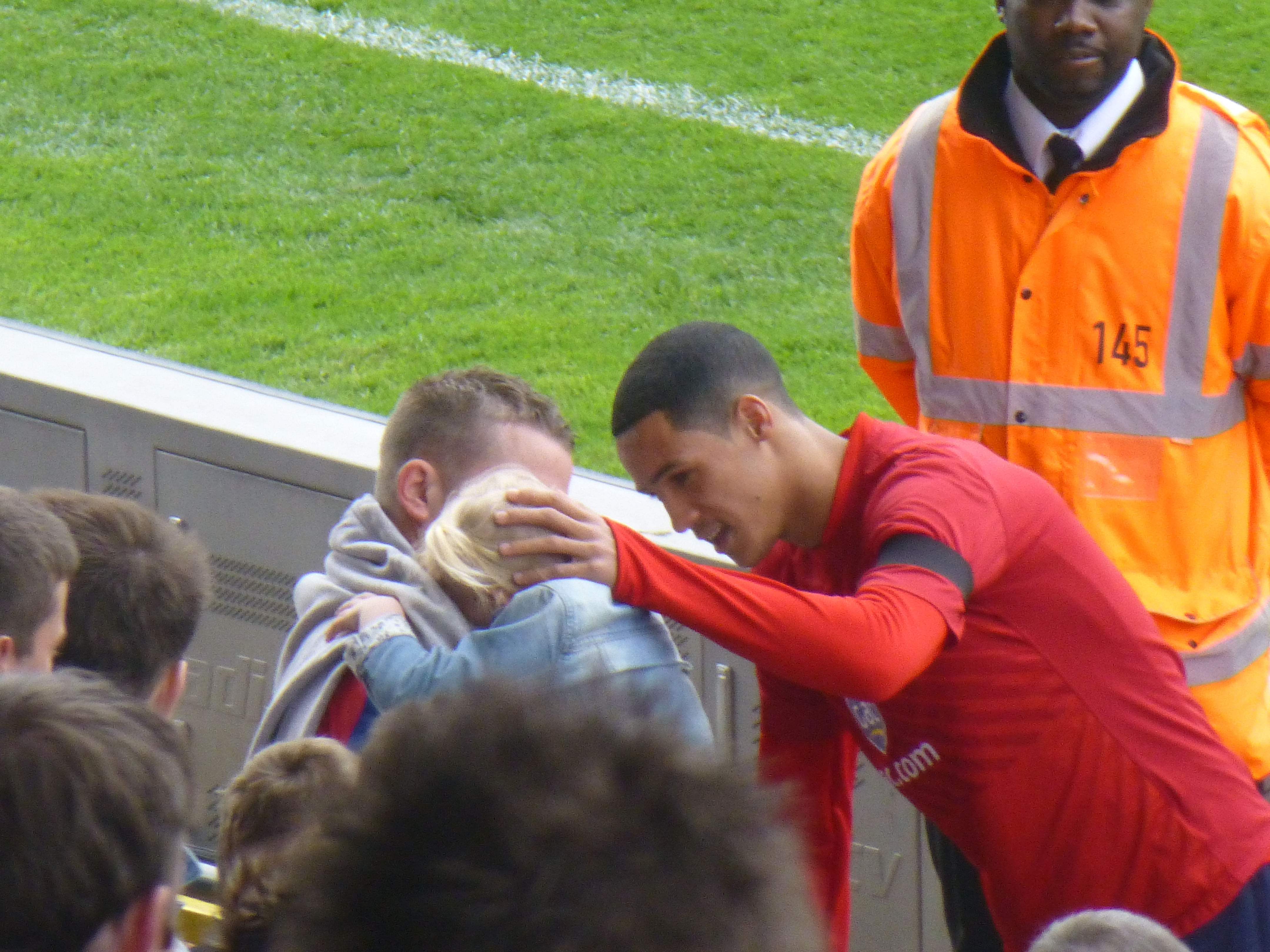 I didn't see it but my nipper (who was down the front) tells me that Thomas accidentally hit a little girl (around 4 he thinks) with the ball during half time.