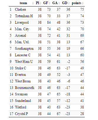 for teams in Premier league both seasons