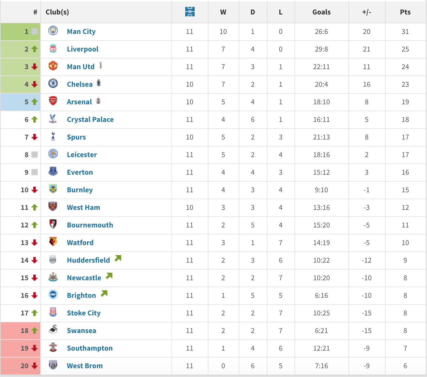 Our form is dramatically different, which is visible with the naked eye as well as with a calculator. What I didn't realise though, was just how bad West Brom have been. They won the first two games of this season but, if you take their 9-game winless streak to end last season, that's 2 wins in 31 games. That's Derby form. This followed them being the 5th largest net spender in the off-season, so it's not like they aren't trying. We are still very much in the relegation mix - in reality everyone up to 10th (at least) is - but with the likes of West Brom, Swansea, Southampton and Stoke all cratering right now, the rest of us have a real opportunity to make it a 4-team mini-league for the drop.