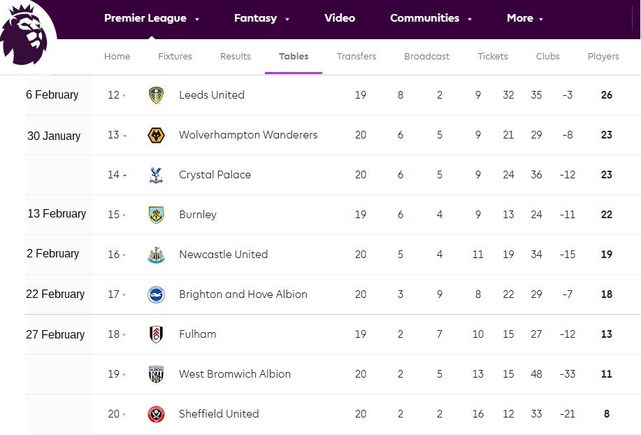 There is still a 10 point gap between us and 18th place and if we were showing any sort of form I don't think we'd be at all concerned. But, the worrying thought is that we will find ourselves on winless run similar to the one we suffered at the end of last season. Of course there is a difference in that after the win against Bournemouth when the league restarted we were pretty well safe. At the current time though, there is still all to play for, although, watching us you'd never think so. A win against Wolves tomorrow would be a real boost and would maintain the gap between us and the relegation zone. However we will be facing that familiar scenario of playing a team on a winless run and we know how that usually pans out.