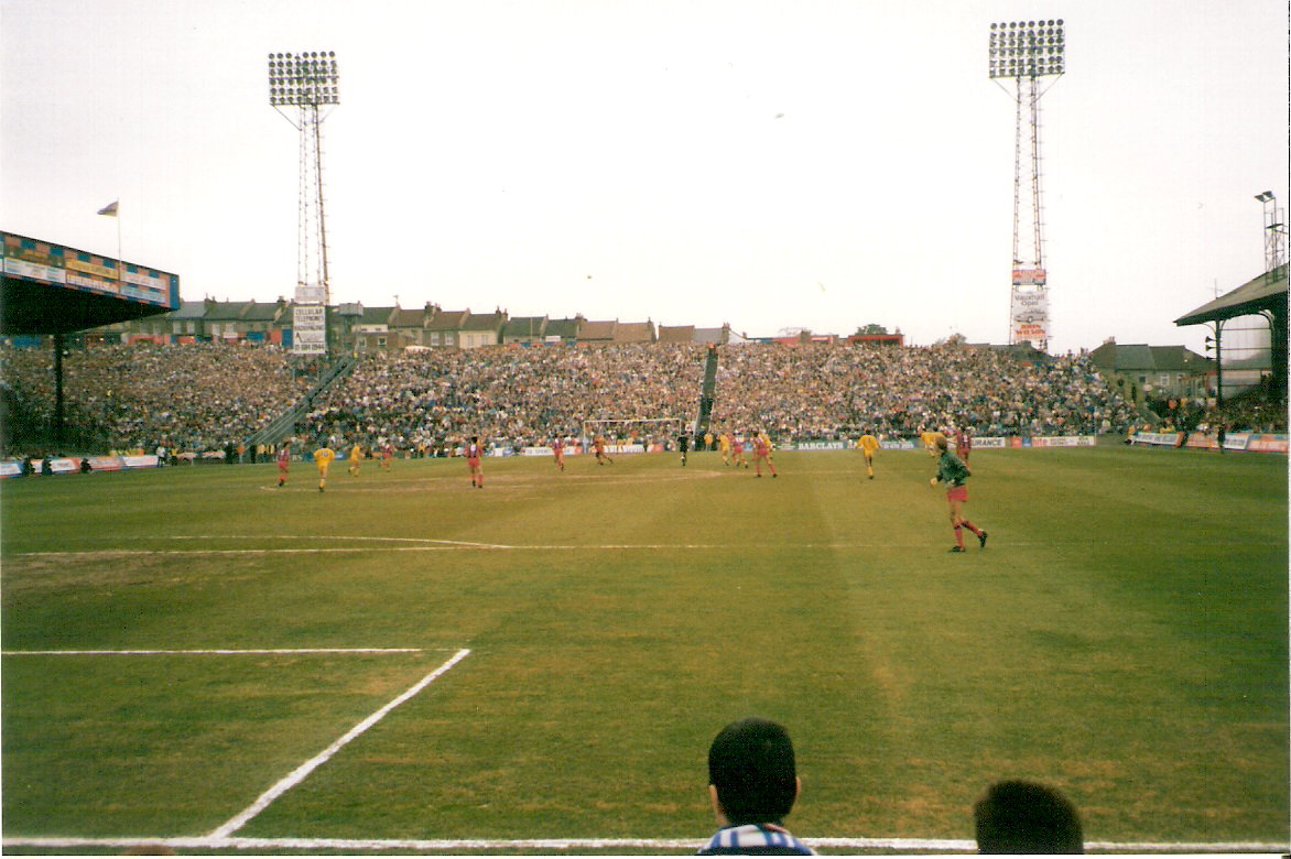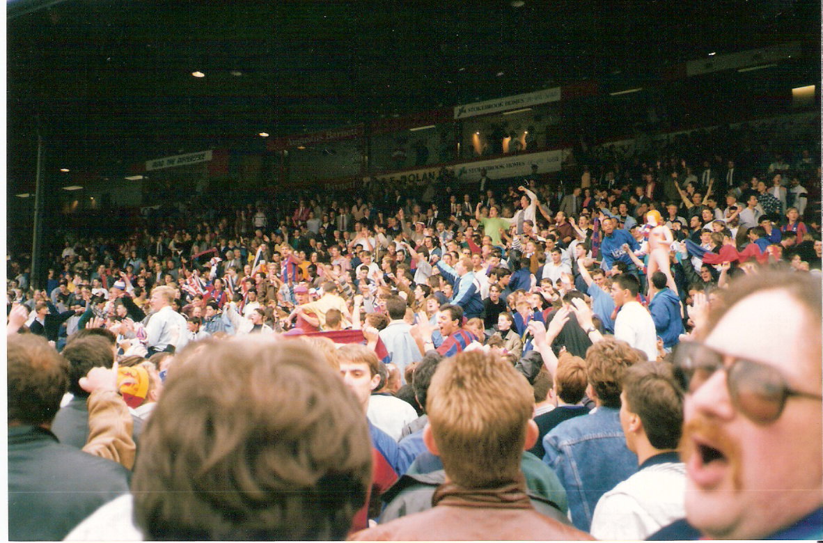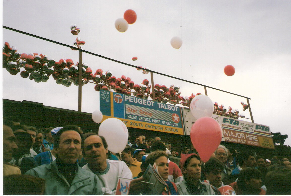 The nerves pre kick off in the Sainsbury's End. Remember the balloons and flags? If you look to the left of the advertisement hoarding, you can see the ITV camera that picked up a great view of Madden's equaliser.