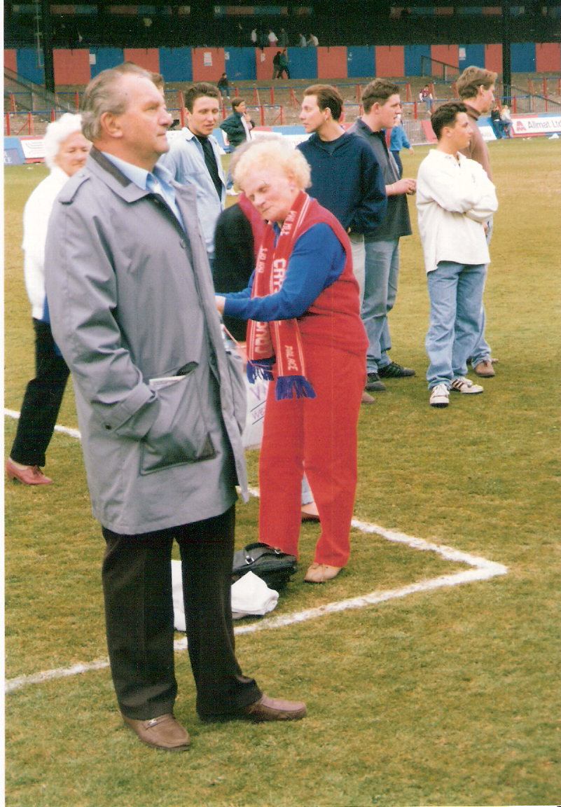 The celebartions focus on the directors box where the players finally emerged. By George! Is that a young female Palace fan completely starkers to the right??? Don't worry - looks like her modesty is kept in tact by what looks like a late 70's Palace scarf - phew! Not sure if anyone remembers Coppell's speech after the game, but one line that sticks out was when he said: "I told the players before extra time: if you ever feel so tired that you think you can't go on, take a look of those fans and that'll keep you f**king going!!" Followed by an apologetic hand to the mouth. Blimey, managers that swear and blow up dolls: we were hard core in the 80's!