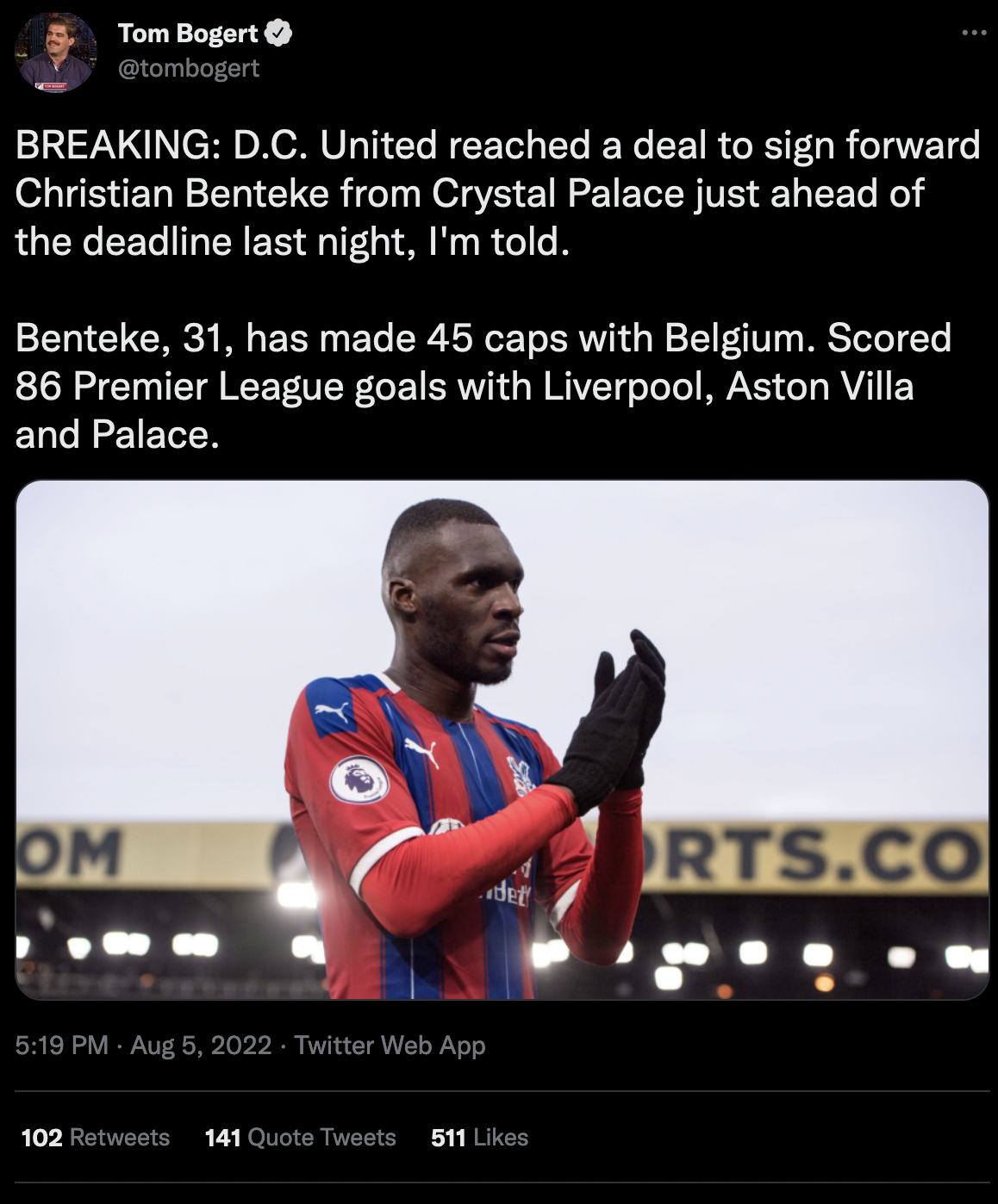 Twitter saying he has signed for DC United. No idea how reliable this is. If true there won’t have been much of a fee from them.