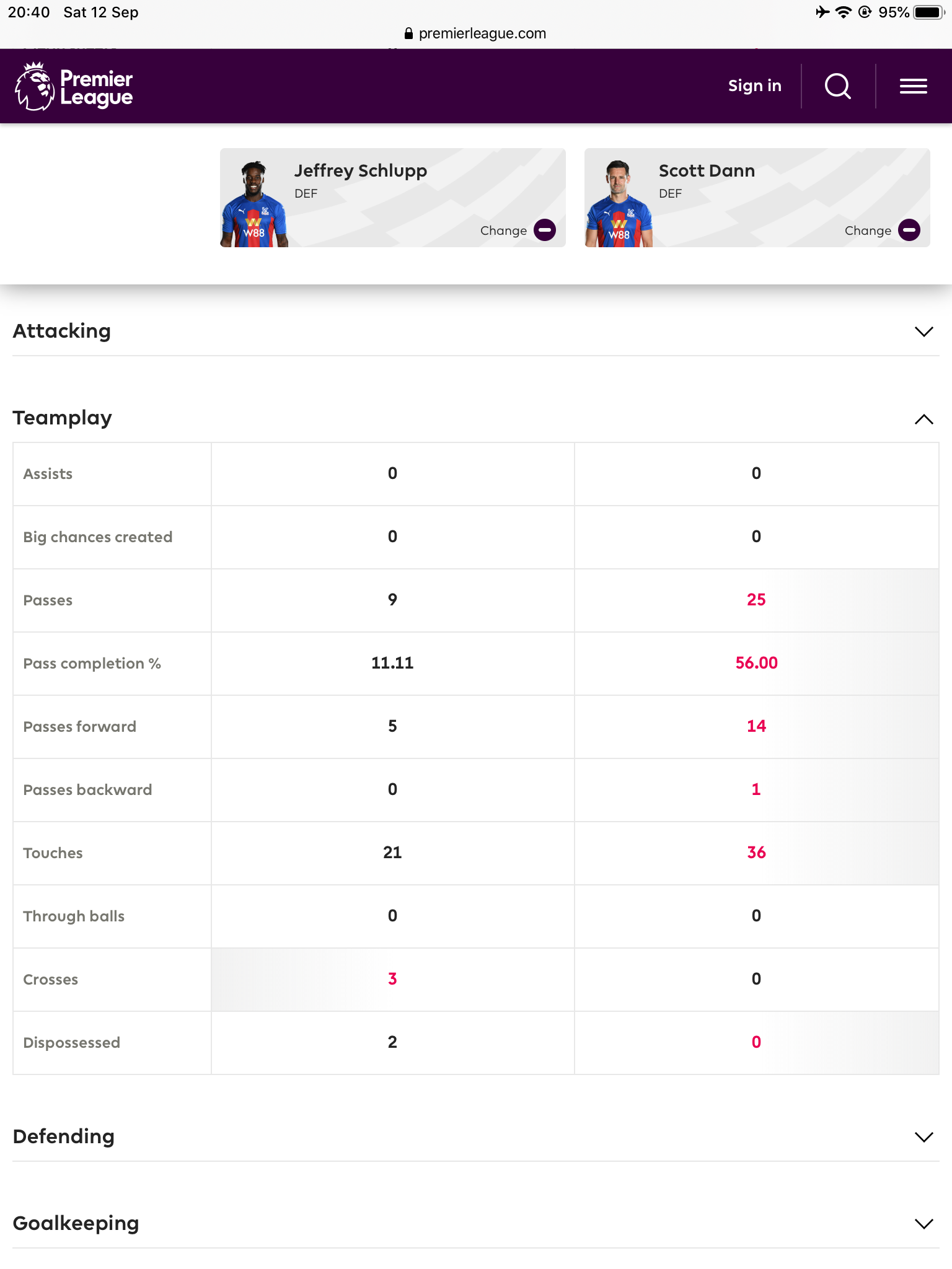 It's impossible to be able to complete only one pass in eighty one mins I cannot believe that. How is it impossible? He just did it. He attempted 9 passes and 1 actually went to his own team mate. Edited by EddieMac (12 Sep 2020 8.31pm) Edited by EddieMac (12 Sep 2020 8.41pm) An apology will do. Thanks Tickled Pink Edited by EddieMac (12 Sep 2020 8.42pm)