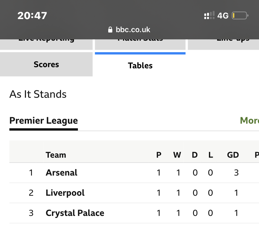 Currently joint second with Liverpool