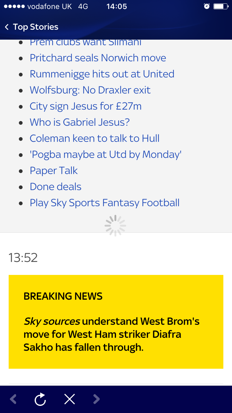 Yep it's true .....BREAKING NEWS Sky sources understand West Brom's move for West Ham striker Diafra Sakho has fallen through.....maybe we're getting him now instead of sb Yes, another crocked striker should fit our bill nicely.
