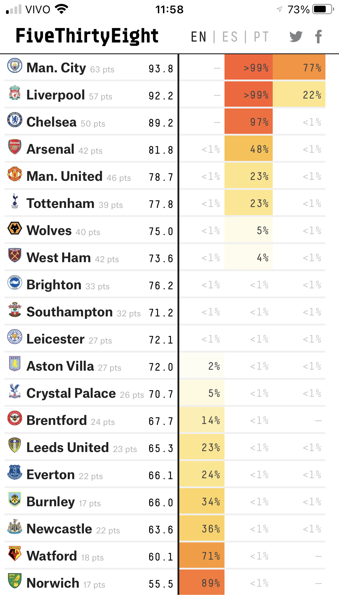 What makes anyone think we'll get points against Watford or Burnley? We couldn't beat dire Norwich or Brentford teams. It will be lucky if we get draws against Watford and Burnley. We're at the point where we have to hope for as many draws as we can manage, and also for there to be 3 worse teams than us the rest of the way. I can't see where we're getting 3 points against anyone the way we've been playing. You were saying?