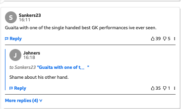 If that was one of McArthur’s best matches just shows how sh@te he has been..!! Look I think McArthur been great for us in seasons gone by - but in the here and now he doesn’t cut it in this team or at this level - he’s time is done. Needs replacing in January. COYP I admire his consistently dogged effort, but I agree that he has set a very low bar for himself this season.