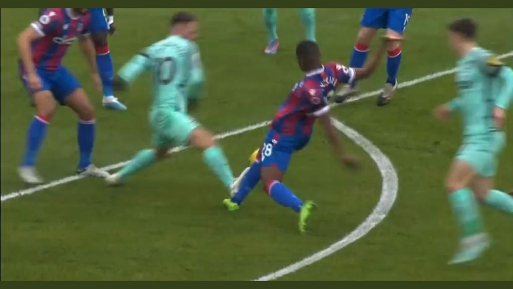 Now Zaha's got a bit of green grass ahead of him here... and finds Ambrose... not a bad effort!!!! |