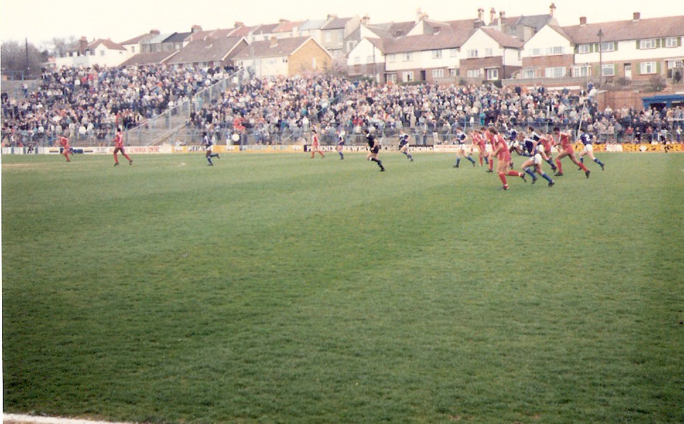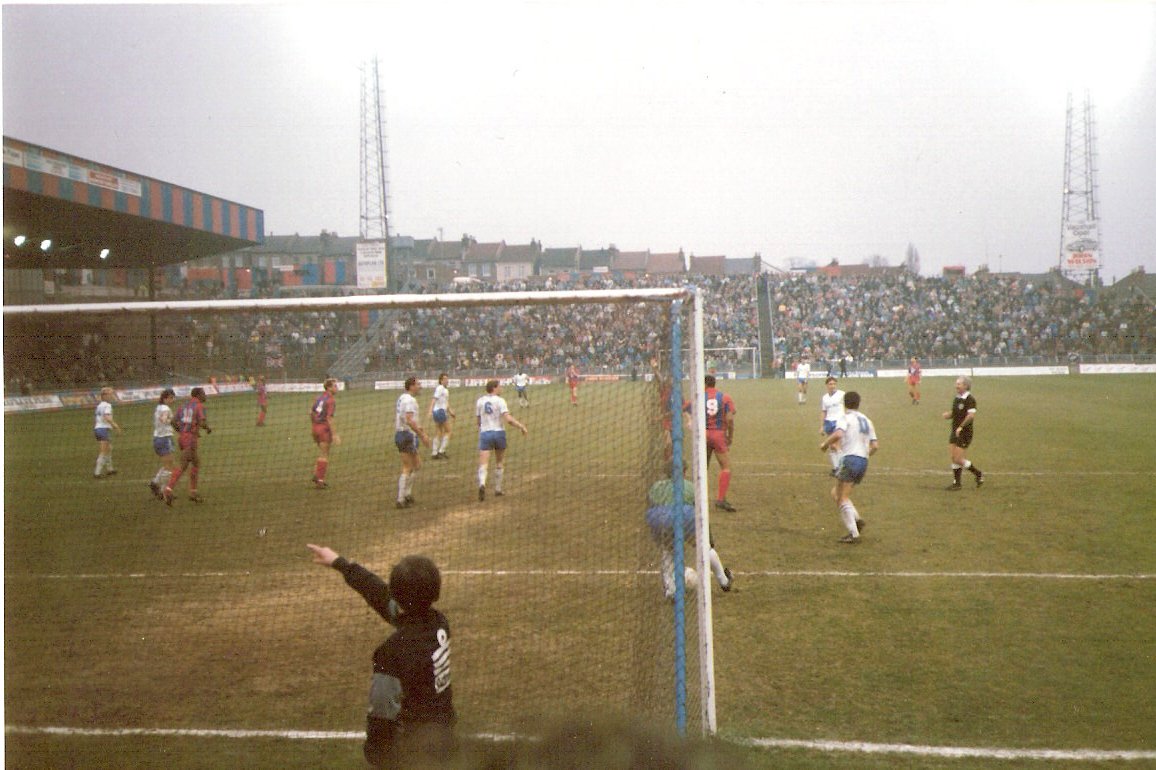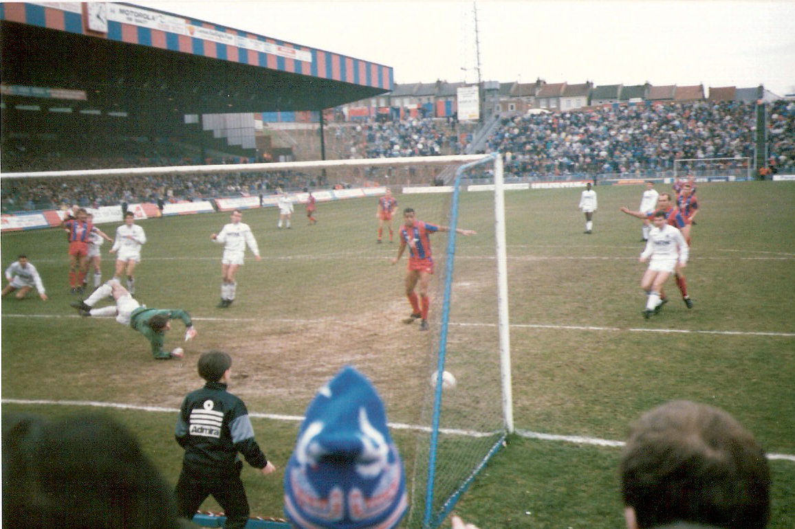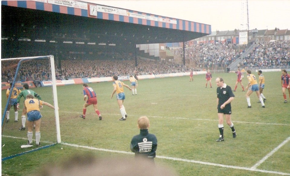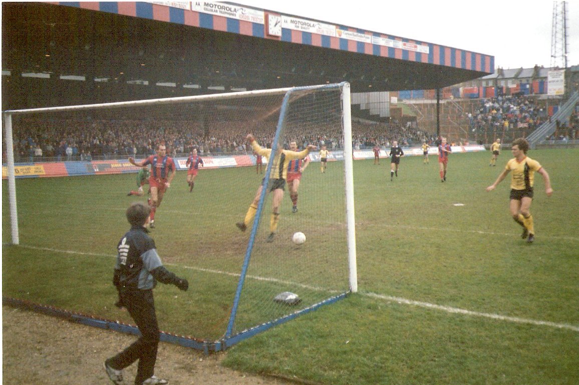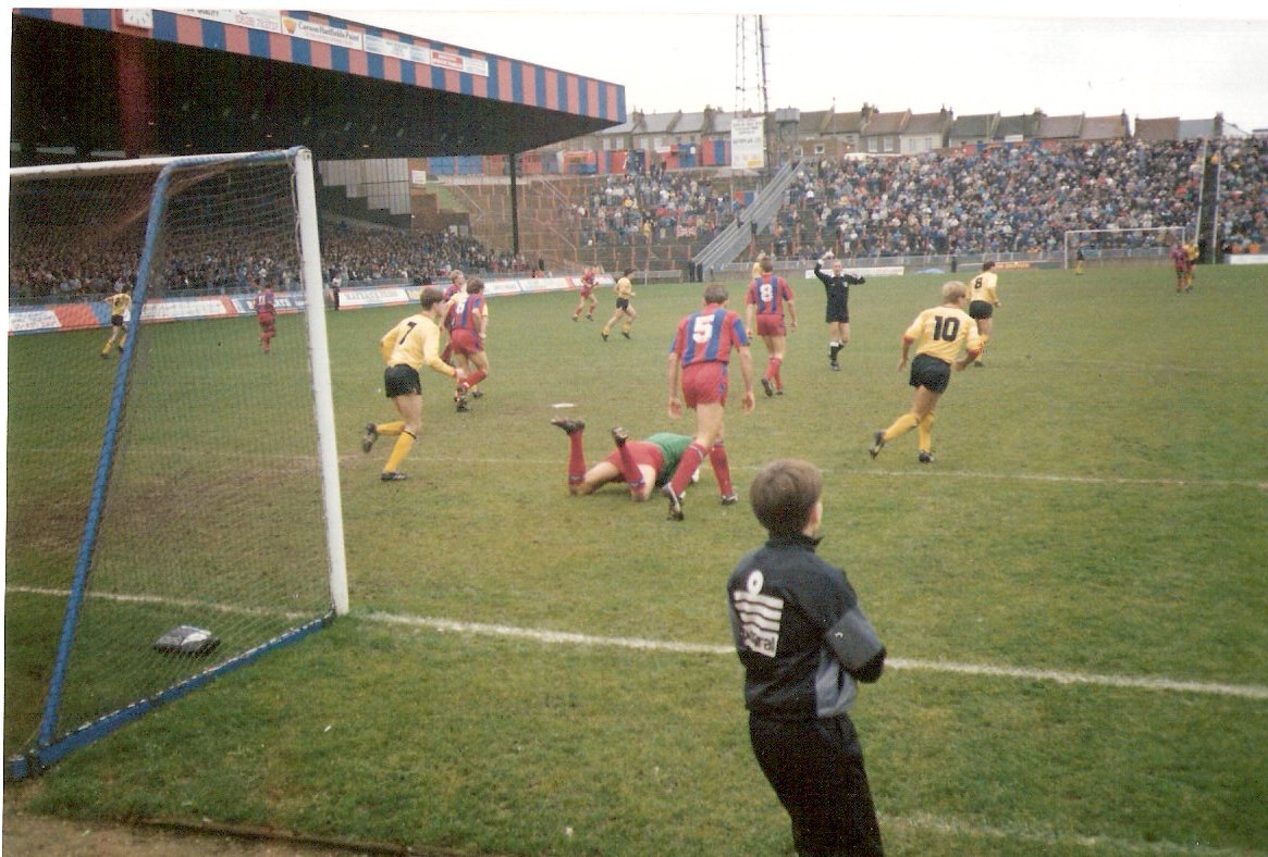 13.12.86 Palace 5 Hull 1 George Wood and Gary Stebbing in the foreground. Just 4,839 at this one to see Finnegan 2, Taylor, Barber & Gray score the goals.