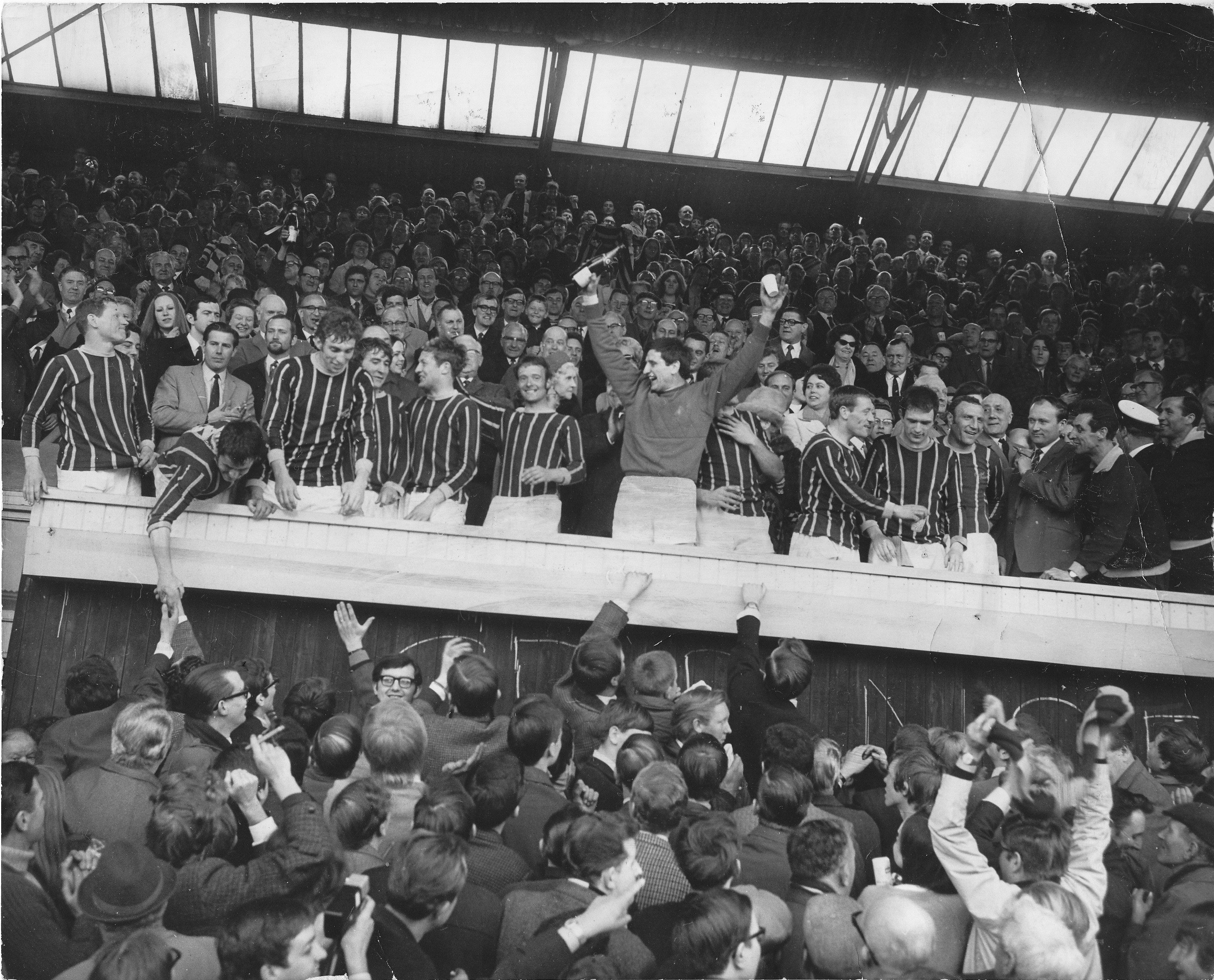 I was there as well, 14 years old and with my Dad who was a lifelong Palace fan. A fantastic day especially the pitch invasion and the players up in the directors box chucking their strip into the crowd. I think we also went to see the first game in Division 1 a 2-2 draw with Man U at Selhurst wasn't it? Yes that's right I was in the new Arthur Wait enclosure, Mel Blyth & Gerry Queen scored for us. I was on holiday at the time so missed the match. Listened on the radio though. The reporter said that Mrs Charlton was very impressed at being presented with a bouquet by the club - not sure if we did that for all captains wives or how long the practise lasted. Funny how these odd recollections stayed with you.