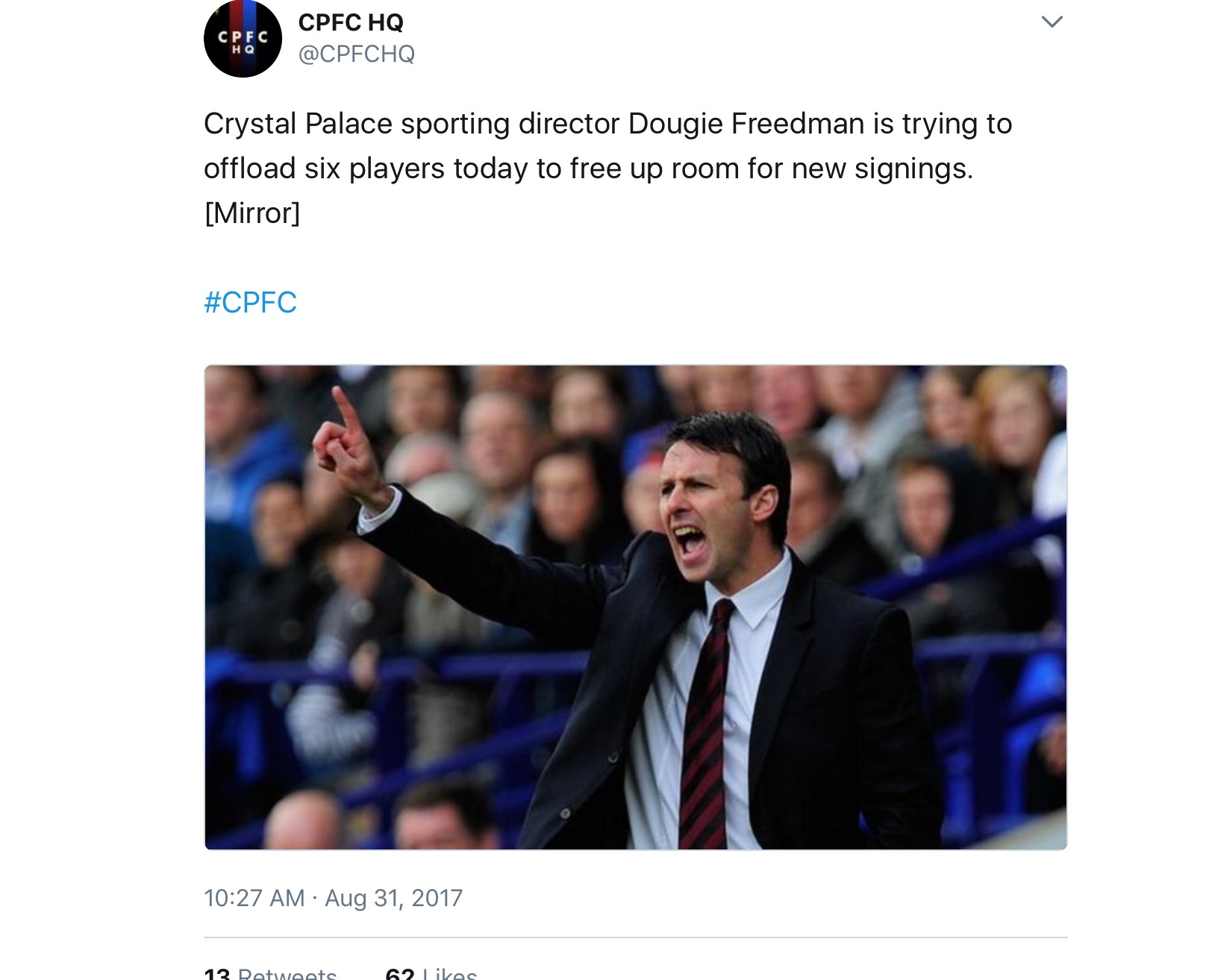 Palace 13th 2017/18. |