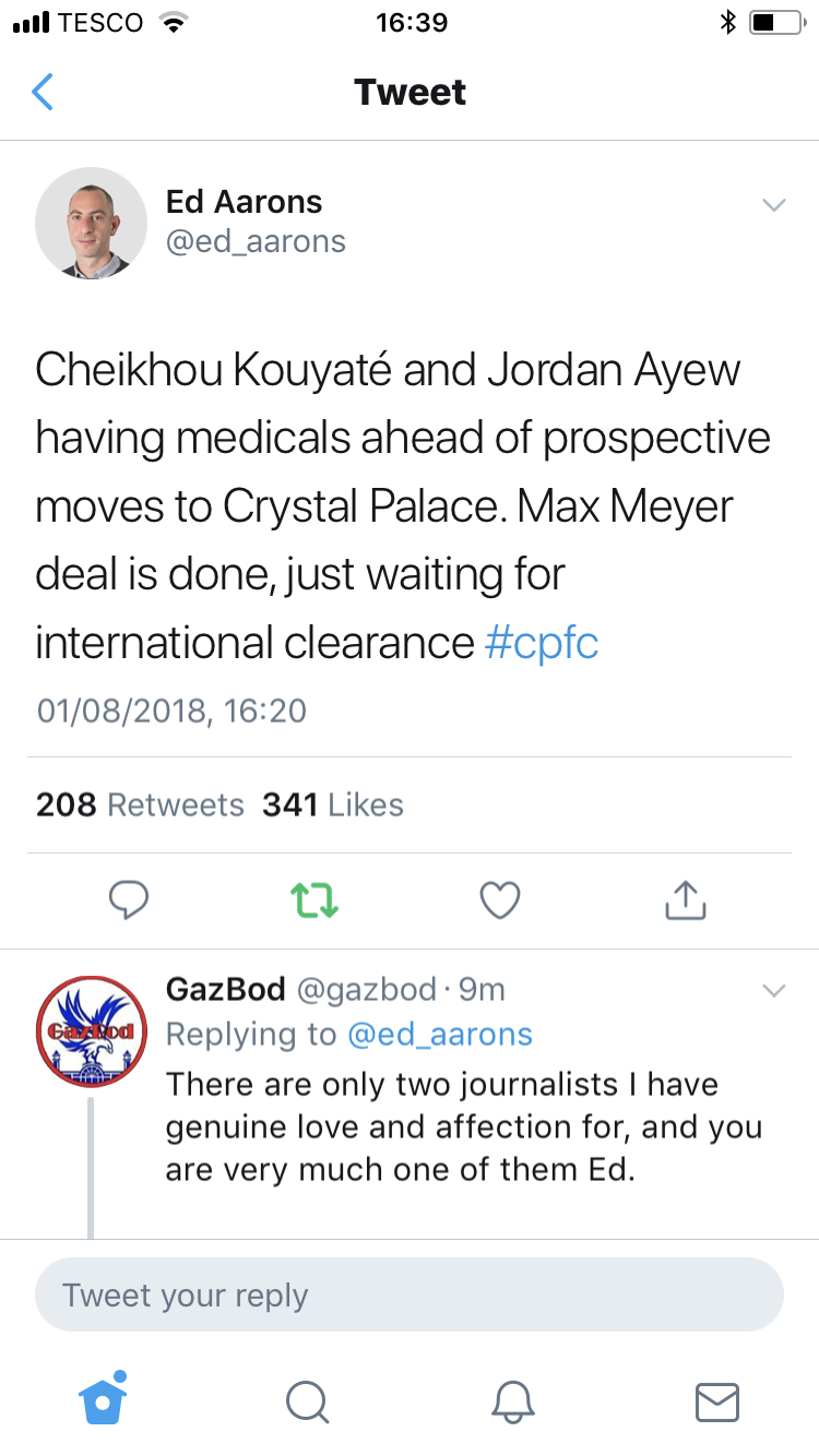 I wonder how much cash is changing hands in the Ayew to Palace and Riedewald to Swansea deal. This is what we needed to do, as long as we get probably another midfielder in on loan.