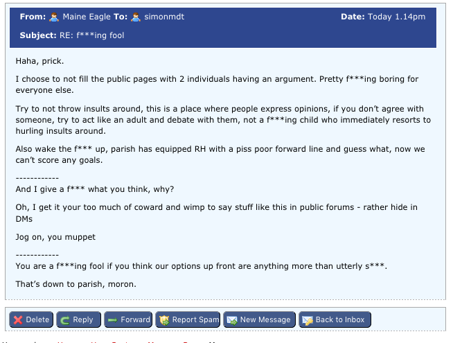 Are you able to reply to a post without insulting people, simonmdt? Same point as the private message I sent you. People are allowed to express dissenting opinions in this place, if you don’t like that, perhaps you shouldn’t read these pages. Would that be the private message where you swear at and insult me? You really are spineless t*** Edited by simonmdt (12 Nov 2018 4.47pm)
