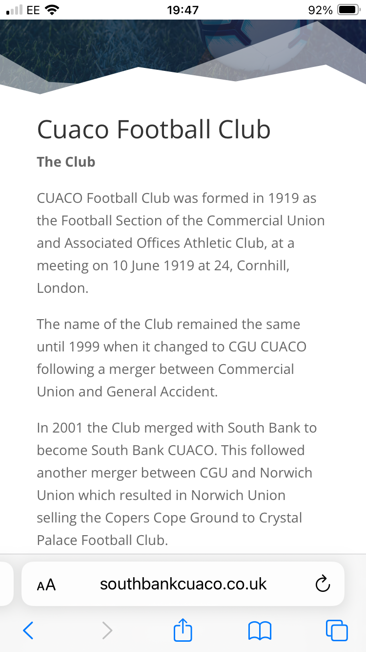Not sure if it was Nat West at some point but prior to sale was always the old CUACO site for Commercial Union Insurance staff and families and when they got absorbed into Norwich Union early 2000s they were I think the sellers to CPFC? Happy to be corrected but was definitely CU pitches 80s and 90s if not before. Dug a bit deeper