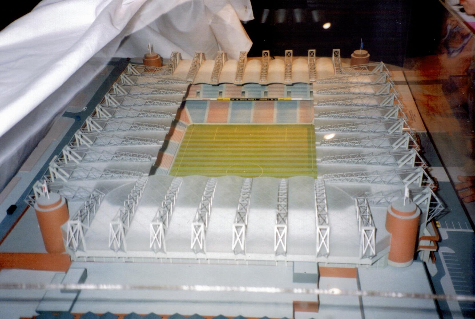Does anyone remember this model that Ron Noades used to display whenever he could? I remember that model well. In the mid 90s a mate and I learned of its existence. Legend had it that this glimpse of a golden future resided in the foyer, just inside the posh entrance to the exclusive 'high end' suites and bars in the main stand. If you remember the main stand in the 90s you will know I am playing fast and loose with the words 'foyer', 'posh', 'exclusive' and 'high end'. The area did have heavy wooden front doors though. Anyway, after one home game us two teenage oiks took it upon ourselves to wander in through those heavy wooden doors and see the future for ourselves. Sure enough, there was the model located on a plinth behind a glass case, cordoned off by some ornamental red and gold rope, like the crown f**in jewels! We looked at it for all of three seconds before a bunch of overweight middle aged stewards in bright jackets came bundling down the stairs telling us in no uncertain terms to sling our hooks. You'd have thought we had come to steal the ZDS cup or something. Looking back at it now I thinks its best described as 'a concept model'. The concept apparently being to replicate the Holmesdale on all four sides. And also to build around / over / instead of Sainsburys. I think Ron was serious about it, as Palace got planning permission for a new main stand not long after the Holmesdale was built, and that new stand was indeed an exact replica of the Holmesdale - literally so, in that the new main stand would have been no bigger than the Holmesdale, and would have run not from corner flag to corner flag, but from from the Whitehorse Lane end to around the edge of the penalty area, leaving a huge void between it and the corner flag. It would have been 2/3rds of a stand! The reason for this was to protect the amenity of the houses we have now agreed to buy, demolish and replace. I suppose the prospect of buying up those houses was all a but much for CPFC in the 1990s, even in the halcon days of reaching a cup final and finishing third in the league. How times change. Those houses are probably worth half a Benteke now. God knows what that says about the modern world, but it has made buying them and knocking them down possible.