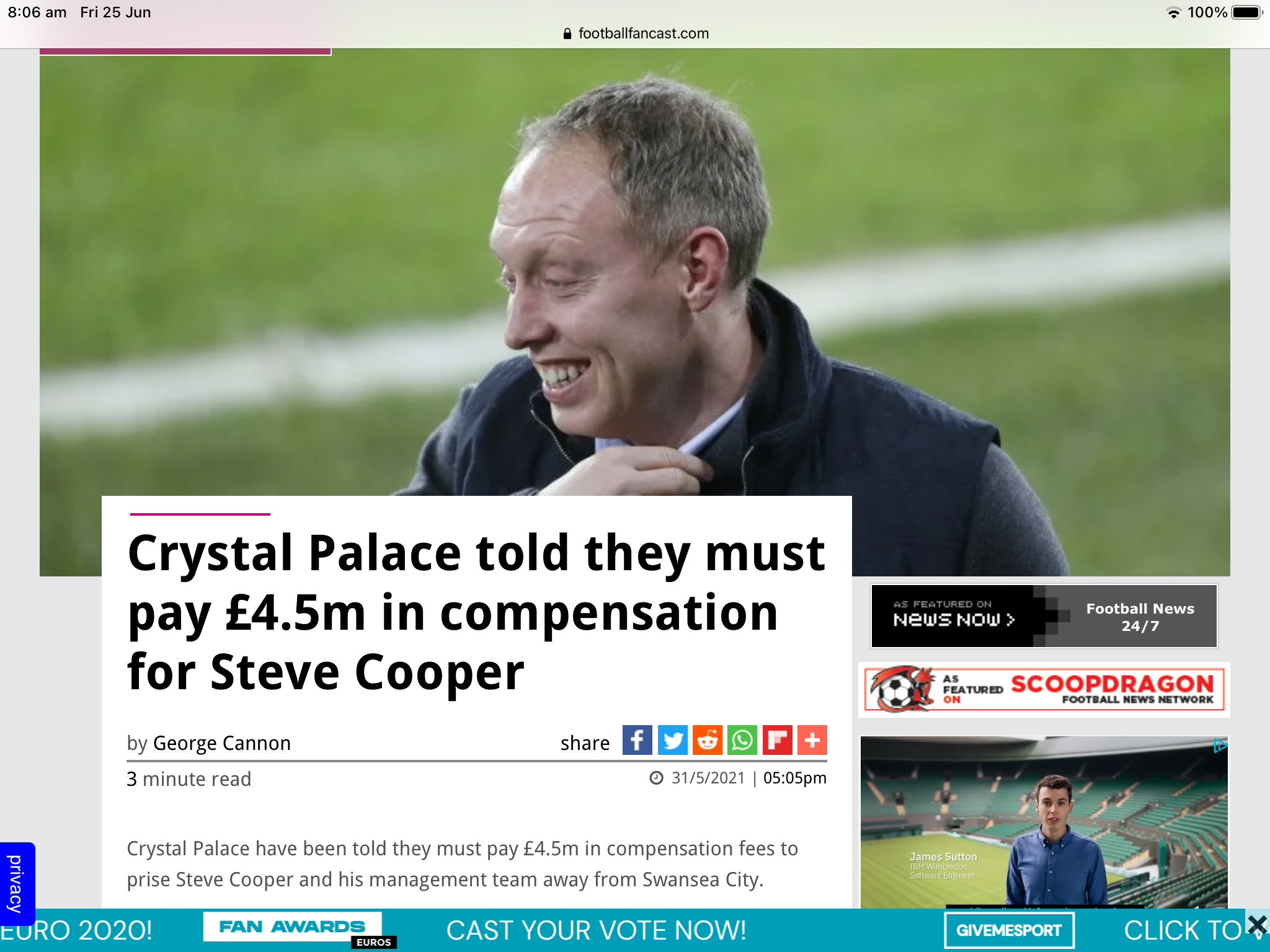If Steve Cooper doesn’t go to Fulham I wouldn’t be surprised if he is offered the job as he seems to be the only person who actually wants it, or so we are led to believe. But who knows, maybe that’s not true either. Edited by pompeyeagle (25 Jun 2021 7.57am)[/