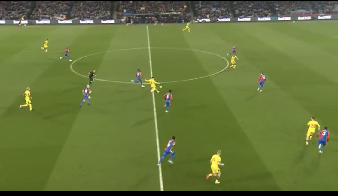 I think it's very simplistic to blame Richards for the first goal - Guehi somehow ended up miles out of position tracking McBurnie 20 seconds into the game, and they then had an overload on Richards side to exploit. He could probably have got tighter as Diaz got into the box, but the damage was done when McBurnie took Guehi out of the game with his flick round the corner, and Hamer switched the play. Look at the still as Hamer hits his pass - if Richards is any wider there, he's got a simple pass to put the central player through on goal, which is far more dangerous - Richards was correct to be narrow, and the bigger question is why we're exposed 3 v 3 20 seconds into a game... Edited by EverybodyDannsNow (31 Jan 2024 4.18pm)