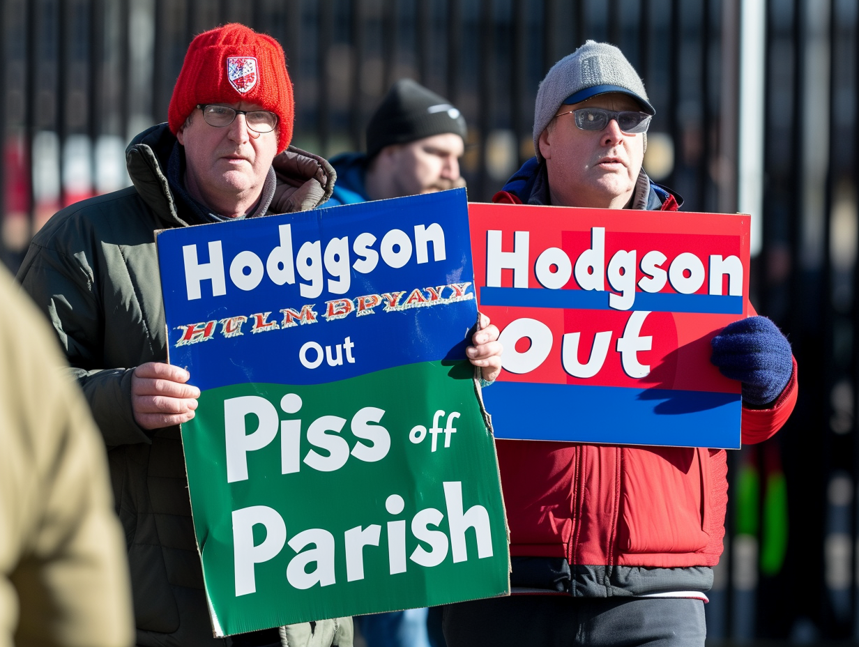 I wouldn't be surprised or particularly bothered if the idiot(s) holding up banners were barred from attending. Idiots confronting players need to grow up. None of this will help our cause. There are some things in football that cannot be managed, and when your two best forward players are constantly injured, there isn't much that can be done. This put pressure on the defence, which is then likely to concede more goals. It also damages confidence. We have signed two good players and we have to quickly develop a system to grind out results. We need 4 more wins. Sacking Hodgson is a very risky move. It might work, or it might be disastrous. Who replaces him? Without Eze and Olise, it don't see how we win games with any manager. We have to get them back on the pitch.