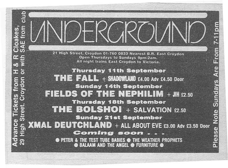 Fvck - was born 5 years too late. Shakin' Stevens at Scamps and Wham! at The Green Dragon were the famous names in '82 as a teenager going out in Croydon for the first time. Underground was cool though. Saved the day.