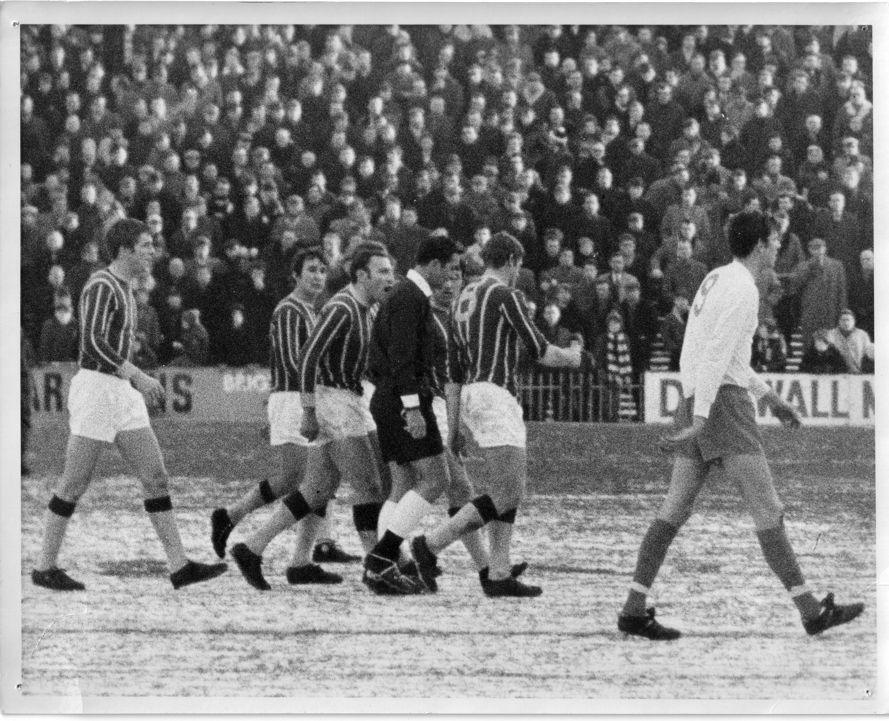 I reckon it's taken either at a reserve game or a bit after the Blackpool game on 28.12.68 was abandoned. John Jackson in goal and it looks like Jack Taylor was the referee. Ref wasn't Jack Taylor but it was Jacko in goal. Pic shows referee getting an earful from Mark Lazarus....