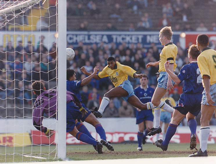 I just got hold of this photo which I believe to be Chelsea v Palace in Feb 1992. There are no details on the back. David Whyte scored our goal and I reckon this must be it. If that's right it's a superb photo of him scoring as Geoff Thomas & Mark Bright look on. Can someone please confirm?