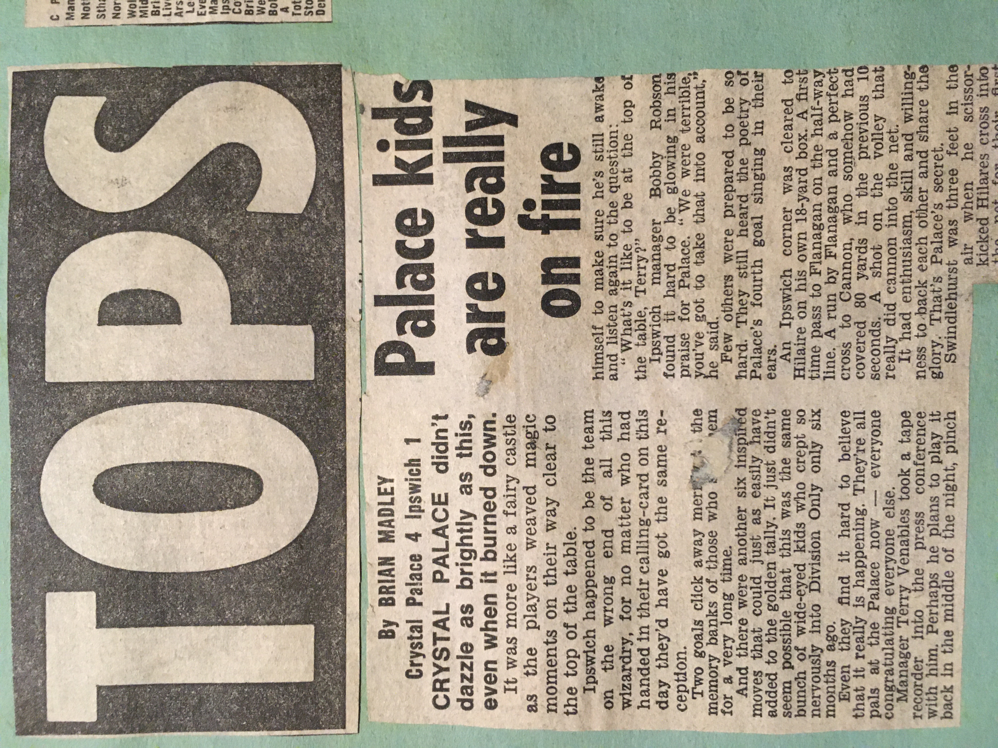 I was there with my 7 year old son. It was his first game and his last as we left to live in Melbourne the following year. He has never forgotten it and is still like me a die hard Palace supporter.
