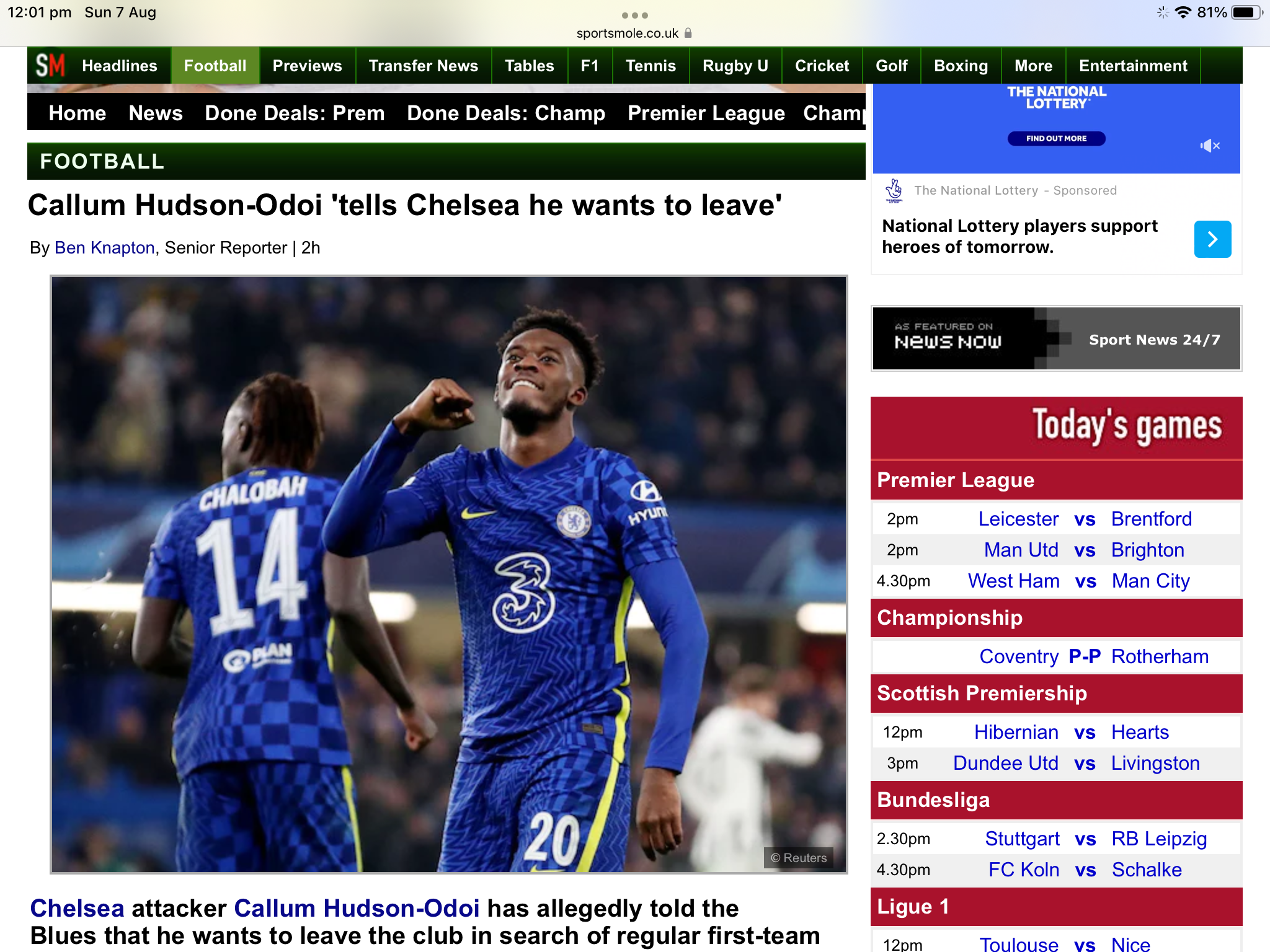 The BBC are reporting that Hudson Odoi is looking for a loan move after being left out of the Chelsea squad yesterday. It says Leicester and Southampton are interested. I think he will go abroad to someone in champions league possibly Bayern if they sell mane