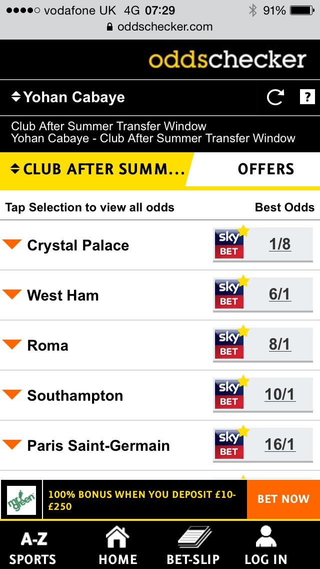 A supposed ITK on the BBS said we'd got him, then this popped up: Crystal Palace and West Ham in battle to sign Yohan Cabaye Both clubs are willing to meet PSG’s £10 million asking price By Jason Burt10:22PM BST 01 Jul 2015 So I'm f*cked if I know what's going on.