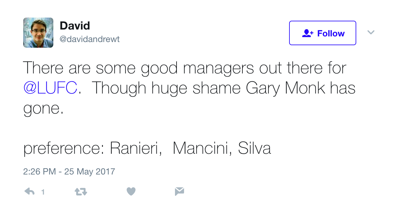 I dont have a good answer for you. But given whats available if its not Mancini the rest are all just as suspect. Dont want Roy, nor Raineri, not convinced about Silva-out of whats available who would you say is clearly more worth taking a chance on? Or who is less of a chance? You don't have an answer, but think Monk is suddenly going to be a great manager. Championship level at best.