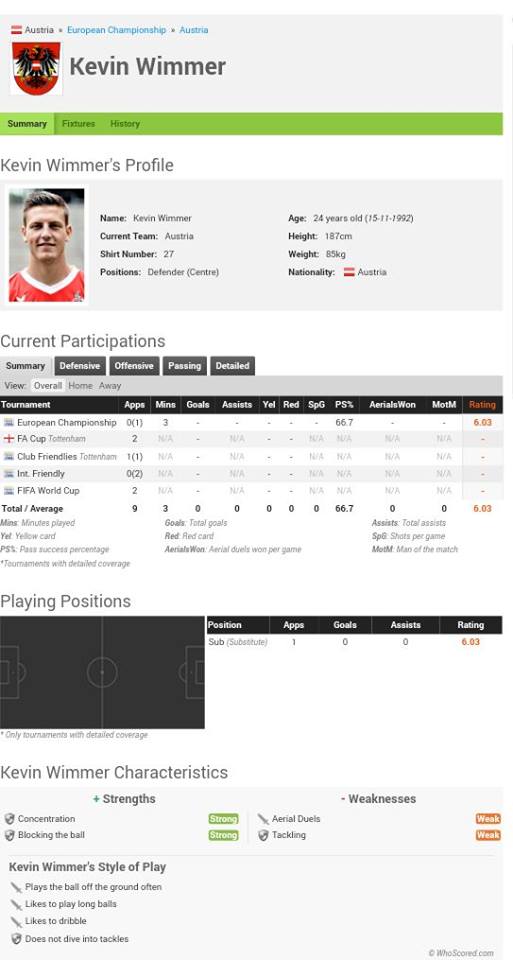 I would be very disappointed if we signed Wimmer as he's hardly done brilliantly at Spurs and for a player of his age he has made surprisingly few caps for Austria, who let's face it, are hardly a footballing force in Europe