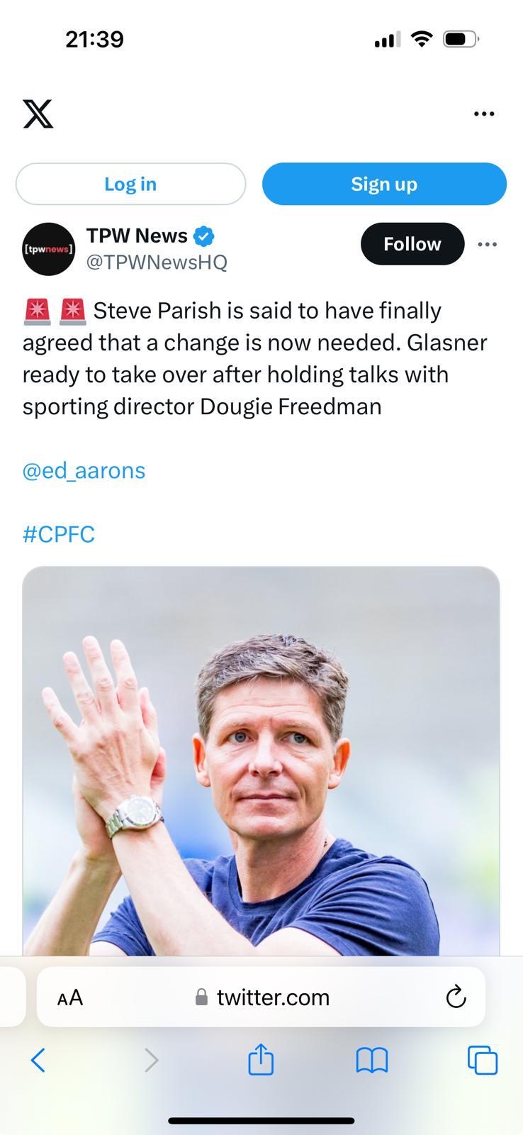 There's a story doing the rounds that Freedman fas been in discussions with Glasner in recent days as a potential replacement.