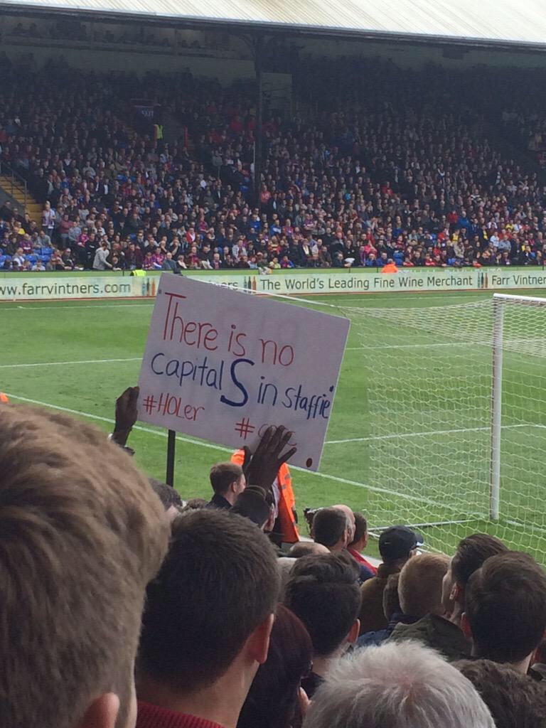 The bloke with the RIP sTAFFIE sign was at the front of block D love to know who it was just to shake his hand for the effort. Miss you just being about mucker, a true palace gent