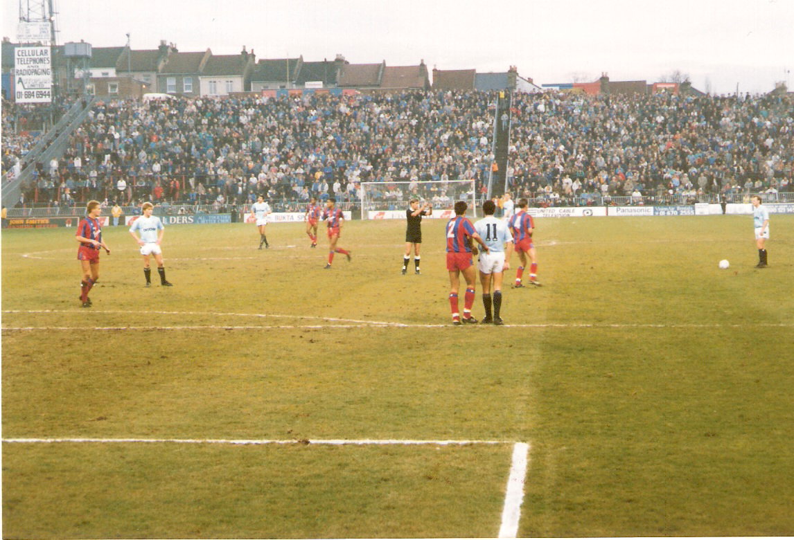 3.12.88 Palace 0 Man City 0 A very unusual occurence in those days - not scoring at home. One of those days where Andy Dibble saved the visitors time and time again. Pic 1: Thomas and Pembo in the foreground