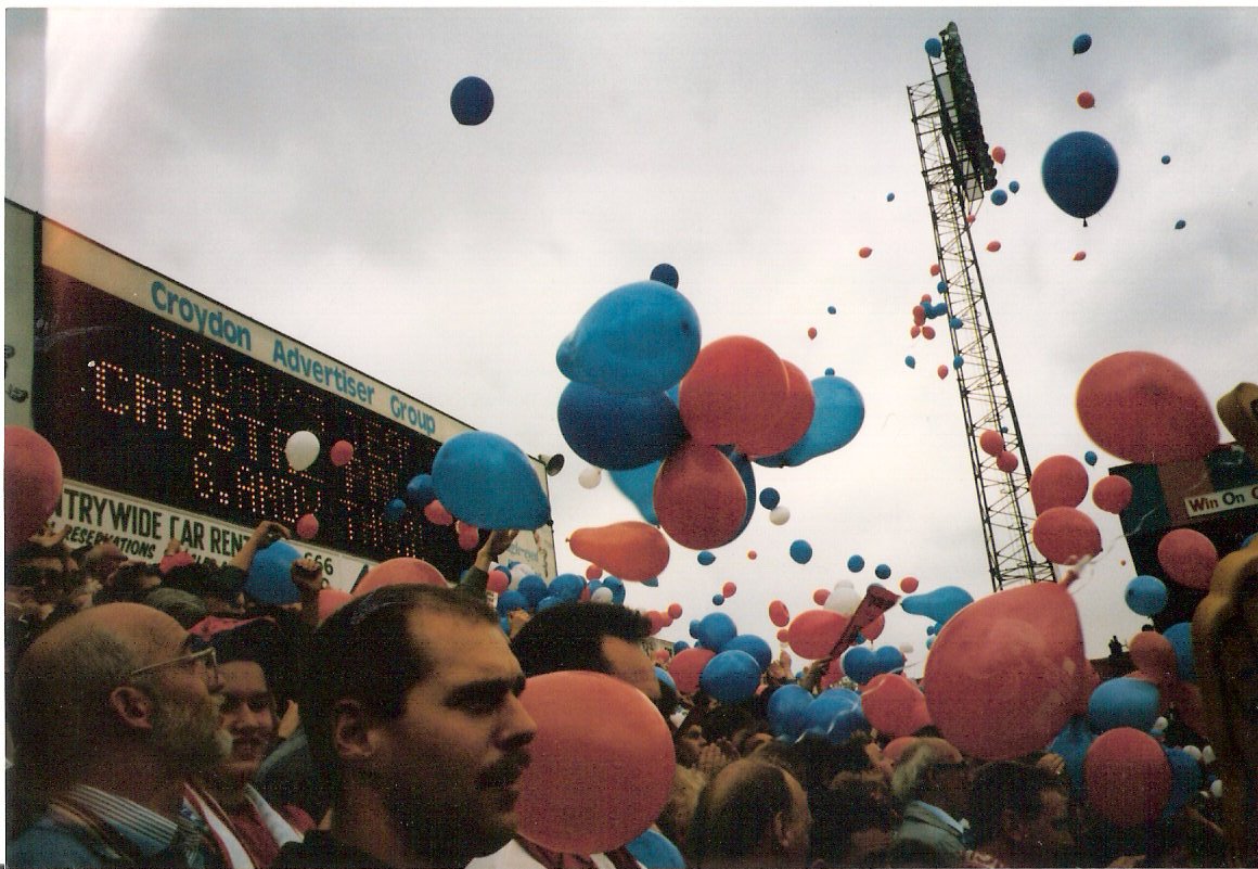 It was very much a celebratory atmosphere after what was Palace's most successful league season ever. These smaller balloons managed to take off as the scoreboard runs through the teams. Is that Lord Lucan ??