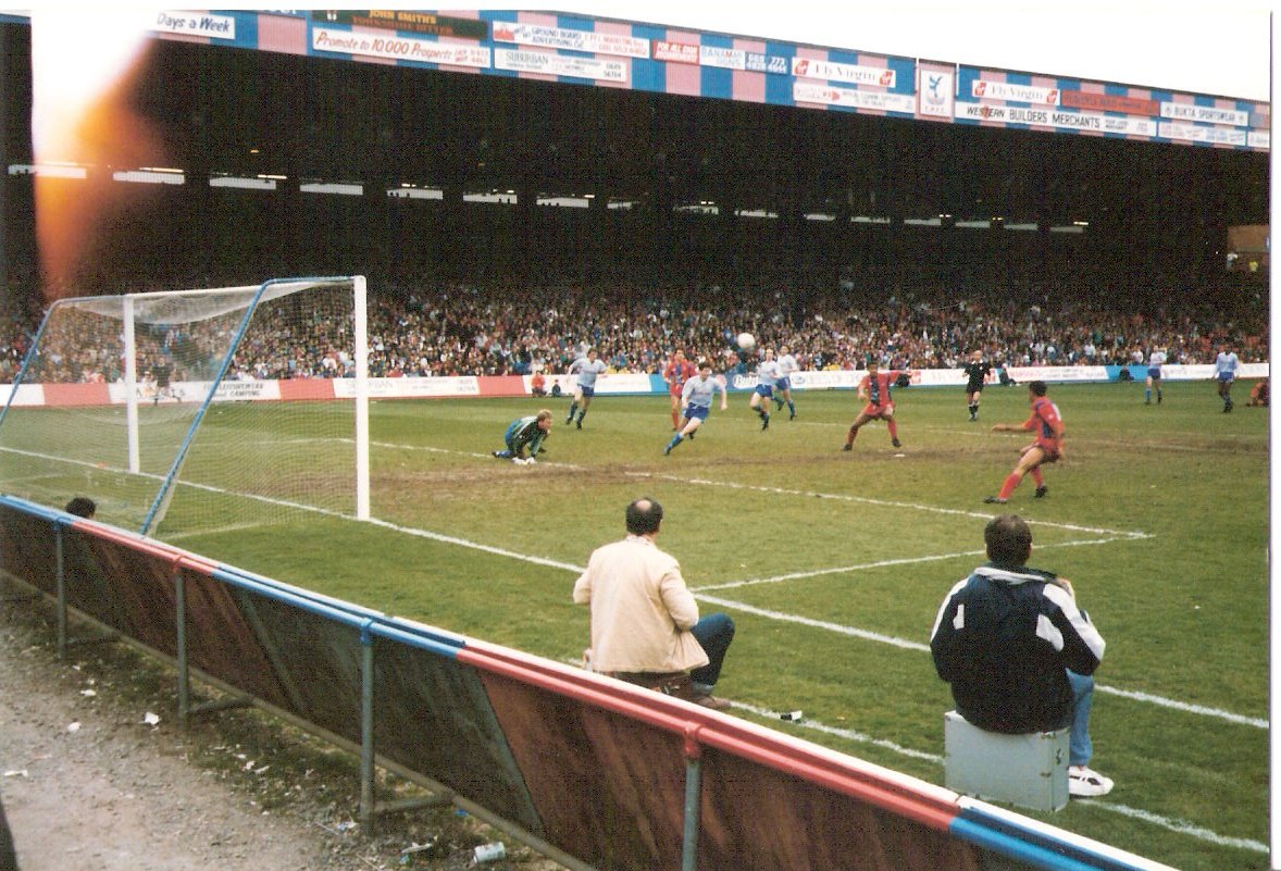 Anyway, goals from recent £1.8m signing Gabbiadini, and Thomas saw us come from behind for a famous victory. Souness was their manager at the time and was beginning to feel the heat from the Anfield crowd. I certainly remember their support being highly critical of their manager after that game and to their credit, complimentary towards us. Not the best two pictures in the world, but the view from the away end as the players in the Brazil kit, take to the pitch to red, blue & yellow balloons courtesy of our new sponsors: Tulip. After this game, Andy Gray became the 5th Palace player in a year to get an England call-up. Out of interest, at this stage of the season we were only 6 points behind eventual title winners Leeds. Just makes you wonder, had we not lost Wrighty and not had that terrible luck with Salako, how close we would've got to doing the unbelievable.