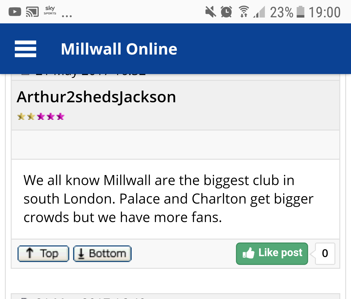 This made me laugh when checking out Millwall forum