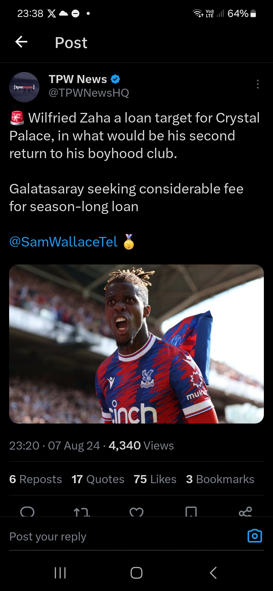 He said recently he wanted to leave Palace because he didn't just want to be known as 'Mr Palace' - he wanted to also win things and have his own story. I honestly think we're the least likely club in any of the top 8 or so first divisions that he'll turn up at, and he doesn't fit the club's buying profile either. “Champions League is top. But I just needed something new and the reality is, obviously Premier League is top, top but I just wanted my identity not just to be Crystal Palace. “You’ve got to understand, I love Crystal Palace so much but I’m more than Crystal Palace. “I didn’t want my talent to just be seen like one of those things where the people go ‘the streets won’t forget ballers’. “I’m more than that… ‘he used to just do tricks and nutmegs in the Premier League’… No, I helped the team win games. You can look at stats, If I didn’t play, we weren’t winning.”