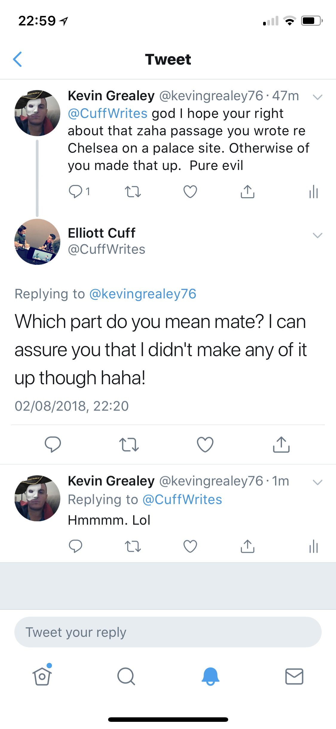 This post has been merged from a topic called 'The Wilfried Zaha Thread' by Midlands Eagle Re the link we saw earlier about zaha wants to move Chelsea I twittered the writer The ‘haha’ in the attachment tells me it’s bollox