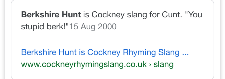 berk = c**t You learn something everyday on here... Berk is an idiot. Cvnt on its own is a nasty, horrible person. He may have got confused with ‘’you stupid cvnt’, thinking it’s the same as berk. Edited by Rudi Hedman (19 Nov 2018 8.05pm)