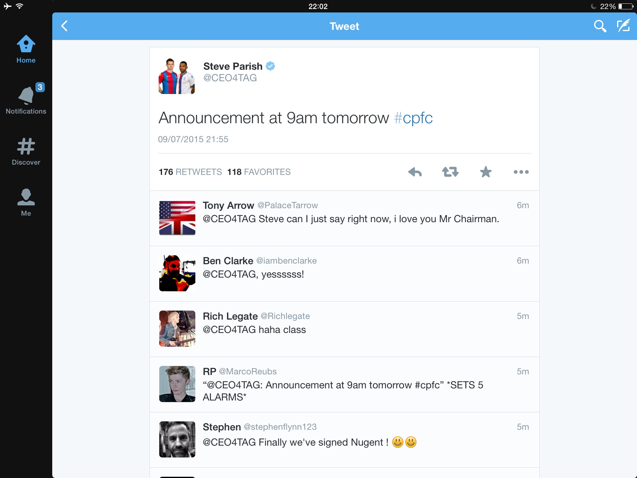 Steve Parish has just tweeted that there will be an announcement at 9am tomoorow morning&#128512;