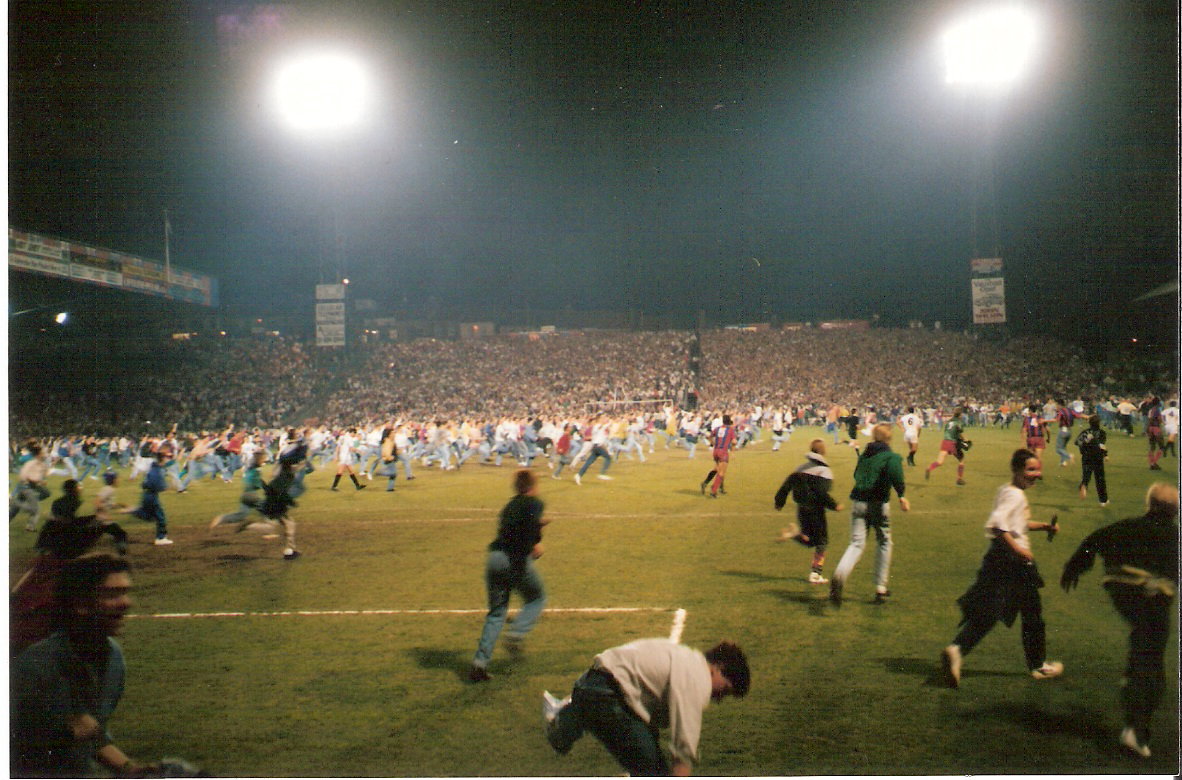 13.5.89 Palace 4 Birmingham C 1 THAT game against Birmingham. One of the most craziest games i've ever been to if the not the most. This picture looks like it was taken when the players returned to the field after the game was suspended for half an hour after the mother of all riots.