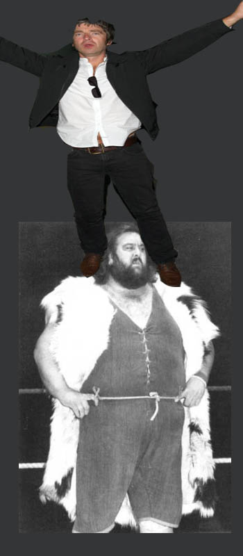 Standing On The Shoulders Of Giant Haystacks Due to a lack of cash after his band split up, Noel Gallagher has to resort to balancing on Martin Ruanes shoulders to watch his beloved Man City over a fence. This week, its the turn of Mick Mcmanus and Shirley Big Daddy Crabtree to topple him. Edited by nickgusset (18 Nov 2009 9:32pm)