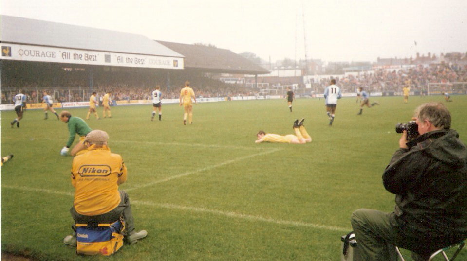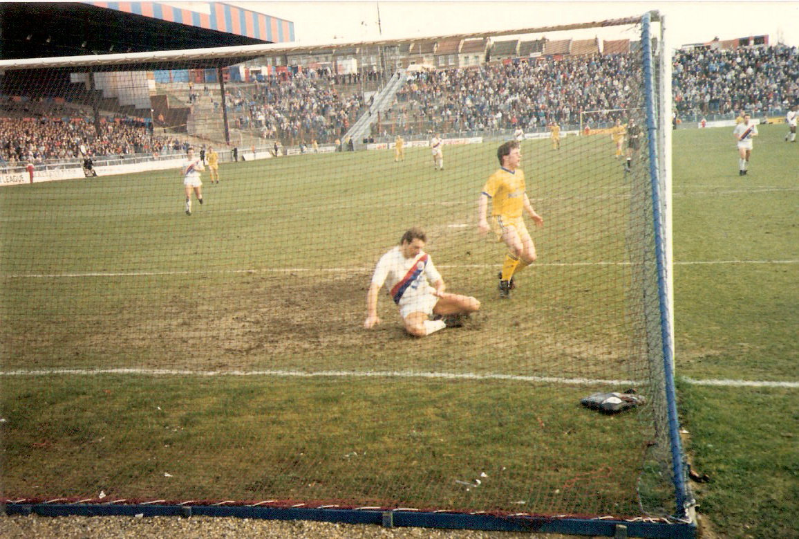 26.4.86 Barnsley 2 Palace 4 Steve Ketteridge here I think slotting one in. Our last away game of that season - nothing riding on it but a real feeling among the small band of Palace fans that good times were on the way.