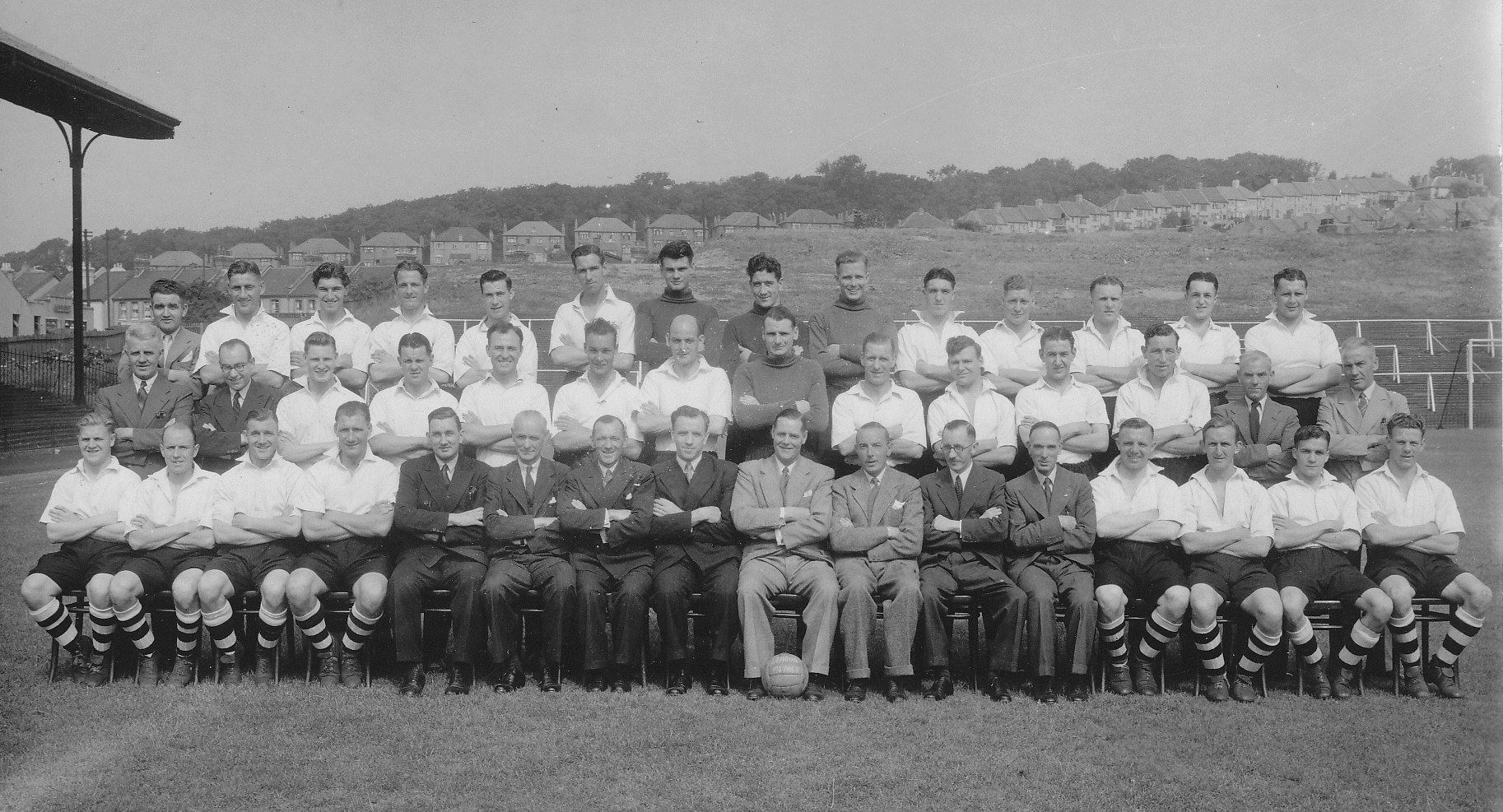 I think Freddie Kurz is 3rd left seated and Jack Lewis 4th left seated. The bald headed Bill Bassett is next to gk Dick Graham centre.