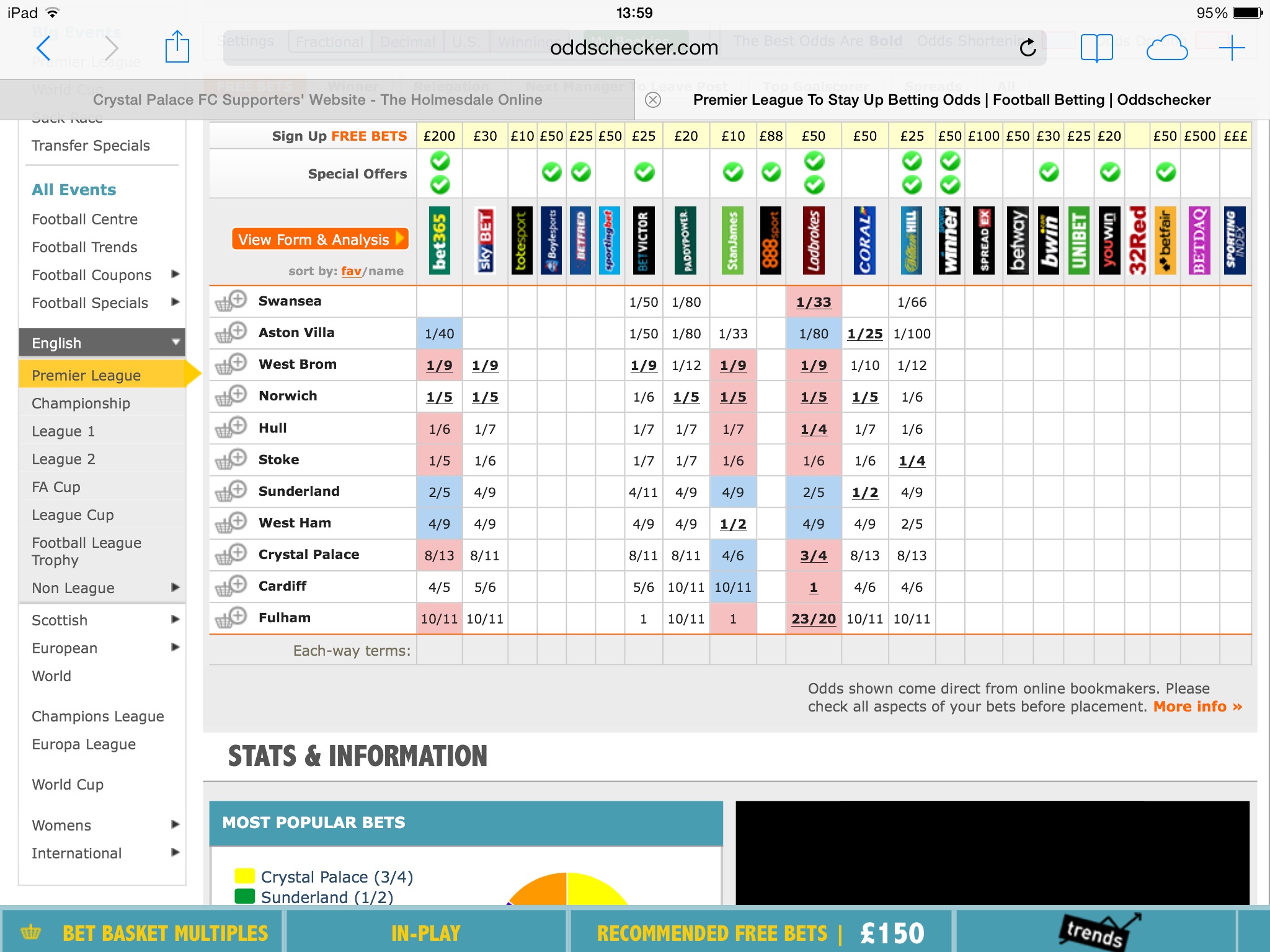 whats the odds now days for us and other teams to stay in the Premier League now tp is owe manager