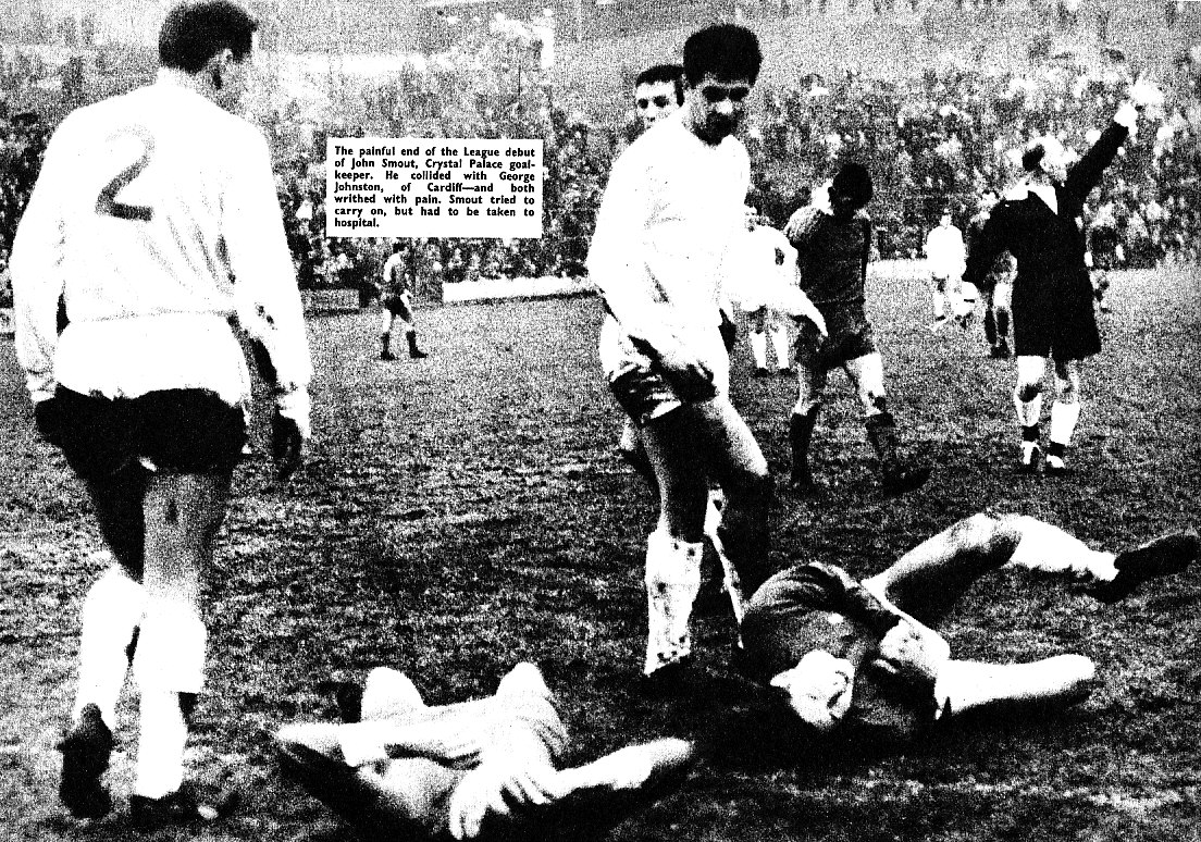 I found the attached article on Ebay last week and had to have it. I'd never seen the incident before where our then third-choice keeper, Welshman John Smout, was battered by Cardiff players including George Johnston and (not mentioned in the article) John Toshack and was carted off to hospital at half time - never to appear for Palace again. This game was on 4th Dec 1965, it was drawn 0-0 and I think it was the versatile Brian Whitehouse who played the second half in goal. Smout later played 75 games for Exeter City so at least had something to look back on after his initial nightmare. Was anybody reading this at that game?