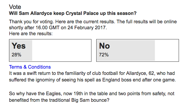 My God! Big Sam's press conference today was utterly dreary. Utterly uninspiring. If the players feel like I do how on earth are they in the right place psychologically? Don't tell us you are frustrated after two weeks of focused work with the squad - Seems as though nothing has happened psychologically during the last fortnight.