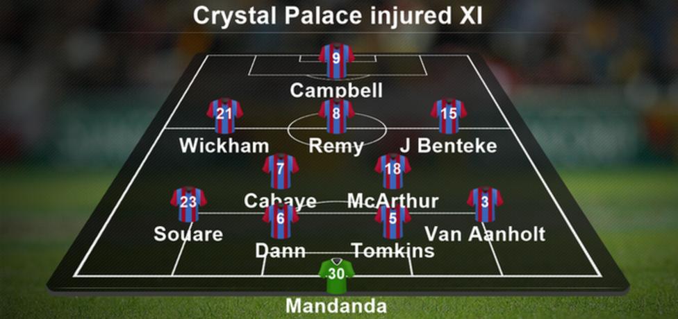 Injured List: Cabaye, Remy, Dann, Tomkins, Campbell, van Aanholt, Wickham, Souare