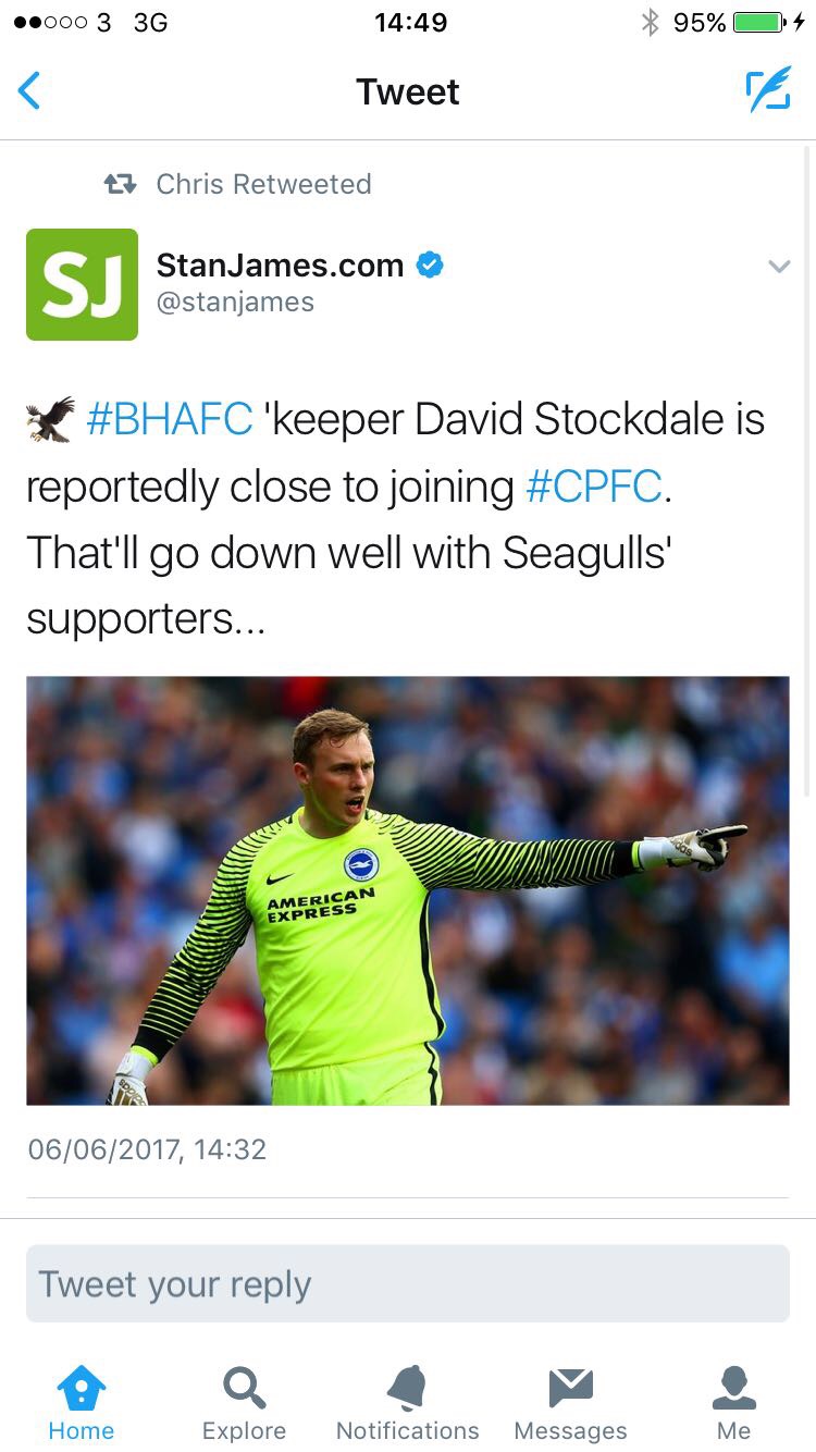 Twitter saying we're close to signing the Brighton keeper.